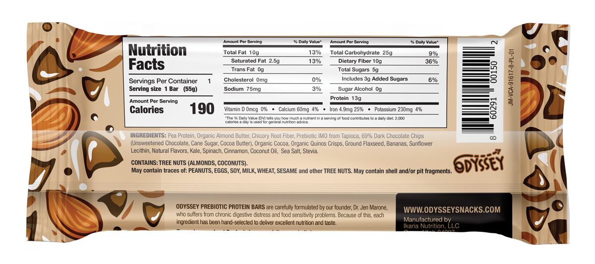 Odyssey supports your digestive health with prebiotic fiber. Our bars also contain all natural sugar and zero sugar alcohols. And to top it all off, they have amazing taste thanks to the real flavor they get from the real foods we put in them.