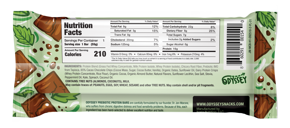 Odyssey supports your digestive health with prebiotic fiber. Our bars also contain all natural sugar and zero sugar alcohols. And to top it all off, they have amazing taste thanks to the real flavor they get from the real foods we put in them.