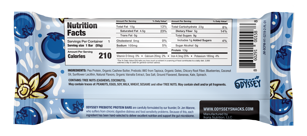 Odyssey supports your digestive health with prebiotic fiber. Our bars also contain all natural sugar and zero sugar alcohols. And to top it all off, they have amazing taste thanks to the real flavor they get from the real foods we put in them.